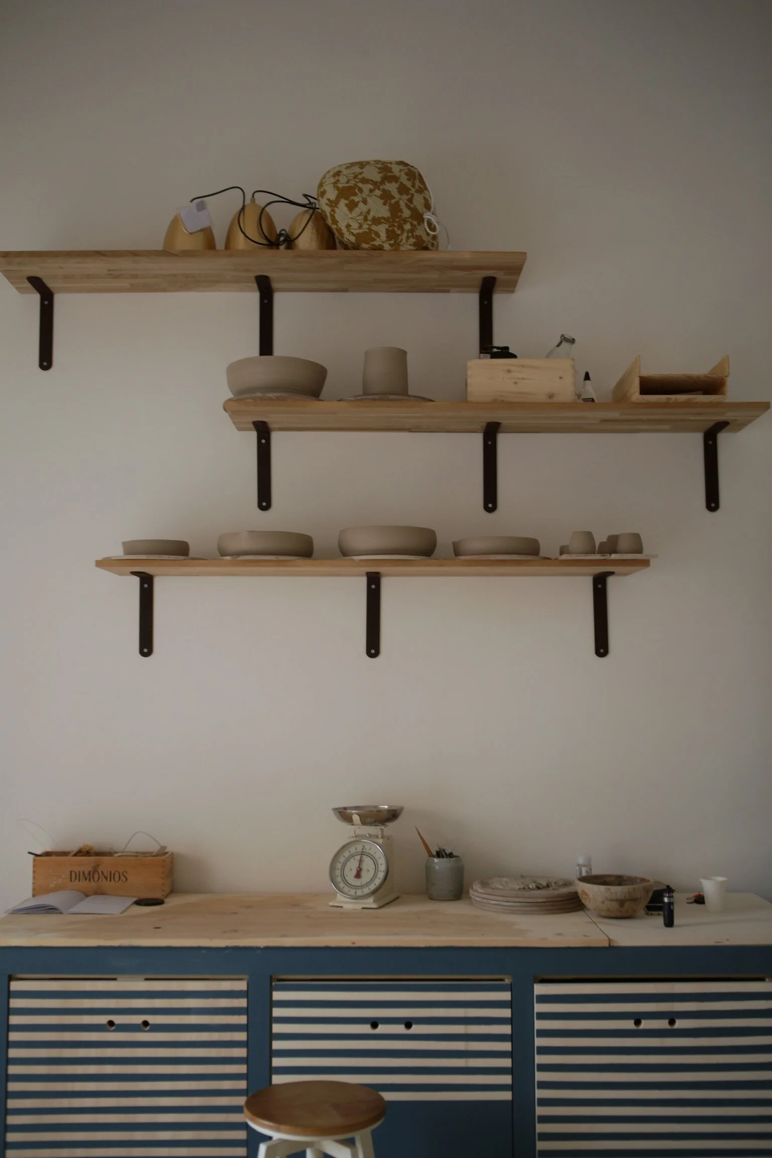 Non avevo un laboratorio. Il tornio e le polveri di argilla calpestavano i pavimenti di casa mia. Il forno invece era nascosto in un laboratorio seminterrato simpatico che condividevo con altre persone. I costi di un laboratorio di ceramica sono molto elevati, i forni, i torni e gli altri investimenti sono difficilmente sostenibili. Ho quindi partecipato a un bando della regione Lazio e ho ottenuto il finanziamento permettendomi di sviluppare il mio progetto attorno a un laboratorio che mi piace chiamare " la bottega”. All’interno, si impasta, si tornisce, si ricicla, si inforna, si poggia un pezzo finito su un tavolo, si chiacchiera con le e i passanti.